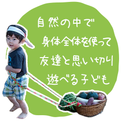 1年を通して、毎日のように自然の中で太陽の光を浴びながら水、泥んこでたっぷりあそびます。